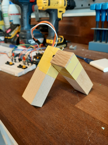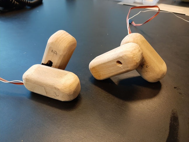 These wooden prototypes were built to test and evaluate different interactions with objects.