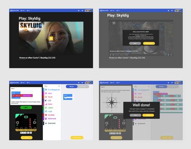 The goal of this project was to motivate students to use the microcontroller ultra:bit in their spare time. My solution was to develop an interactive version of a kids series on DR Ultra, that requires the viewers to solve different problems with their ultra:bit.